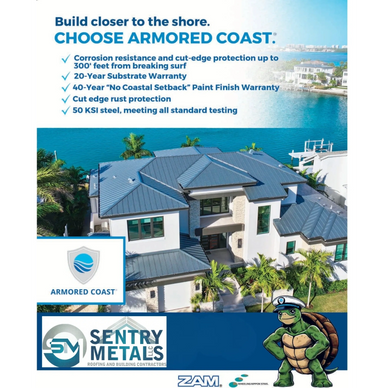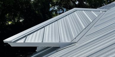 Our 5V Crimp panel gives you that Key West "Old Florida" aesthetic. This exposed fastener panel is strong and budget friendly. Available in 24 gauge steel with a wide range of colors and finishes to choose from.